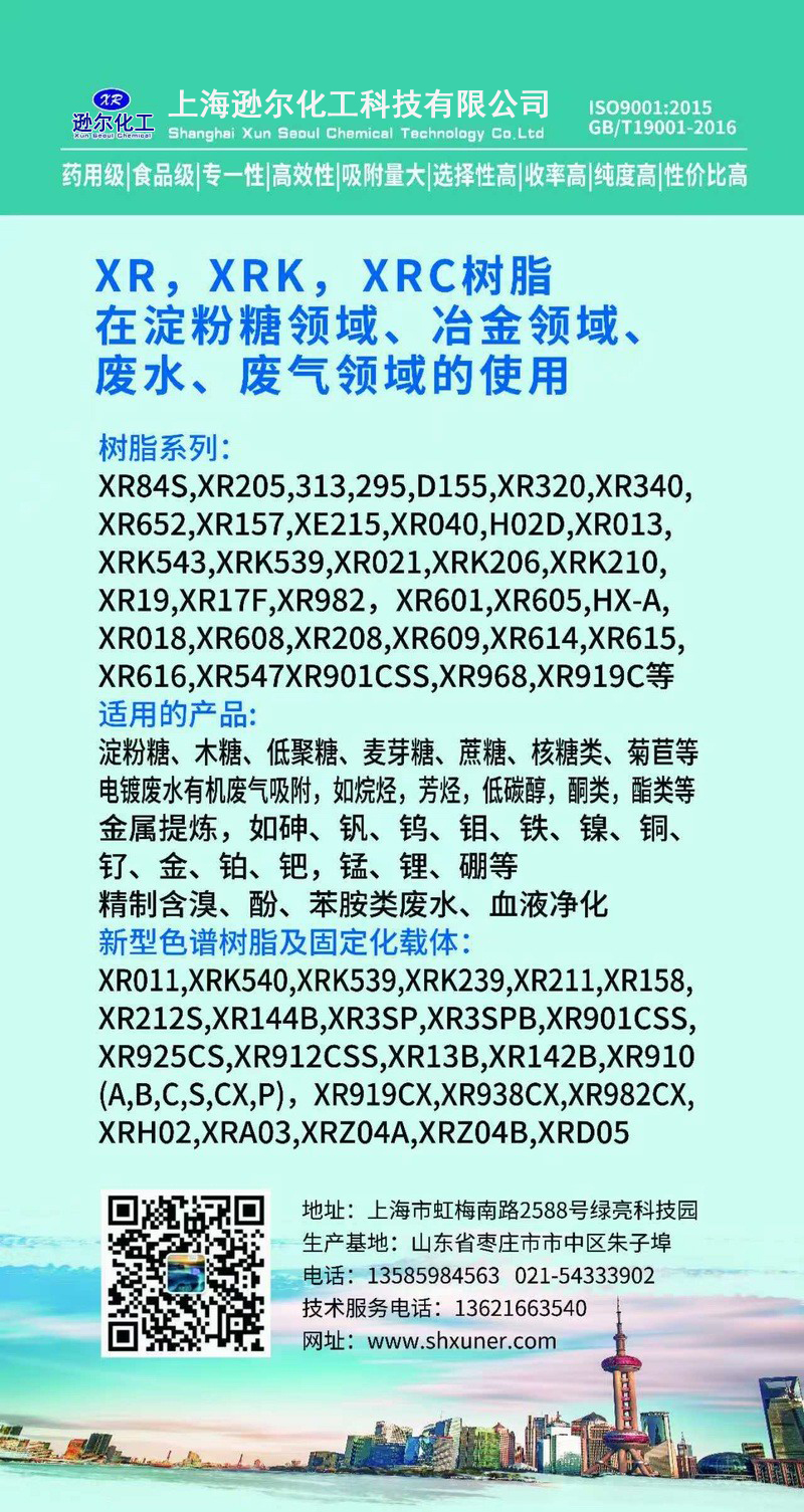上海遜爾化工科技有限公司是上海市新型的高分子材料研發(fā)、生產(chǎn)、應(yīng)用相結(jié)合的高科技公司。公司具有完善的自主知識產(chǎn)權(quán)創(chuàng)新體系,與華東理工大學(xué),江南大學(xué),浙江工業(yè)大學(xué)等科研應(yīng)用平臺合作從事離子交換與吸附樹脂研制、生產(chǎn)和生物醫(yī)藥合成與分離工藝,三廢處理工藝開發(fā)設(shè)計(jì)工作。